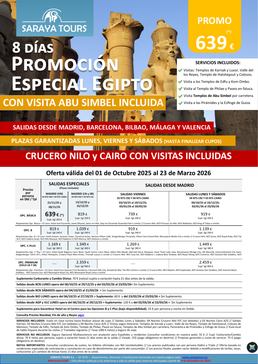 Especial Seniors Egipto hasta Diciembre 2025